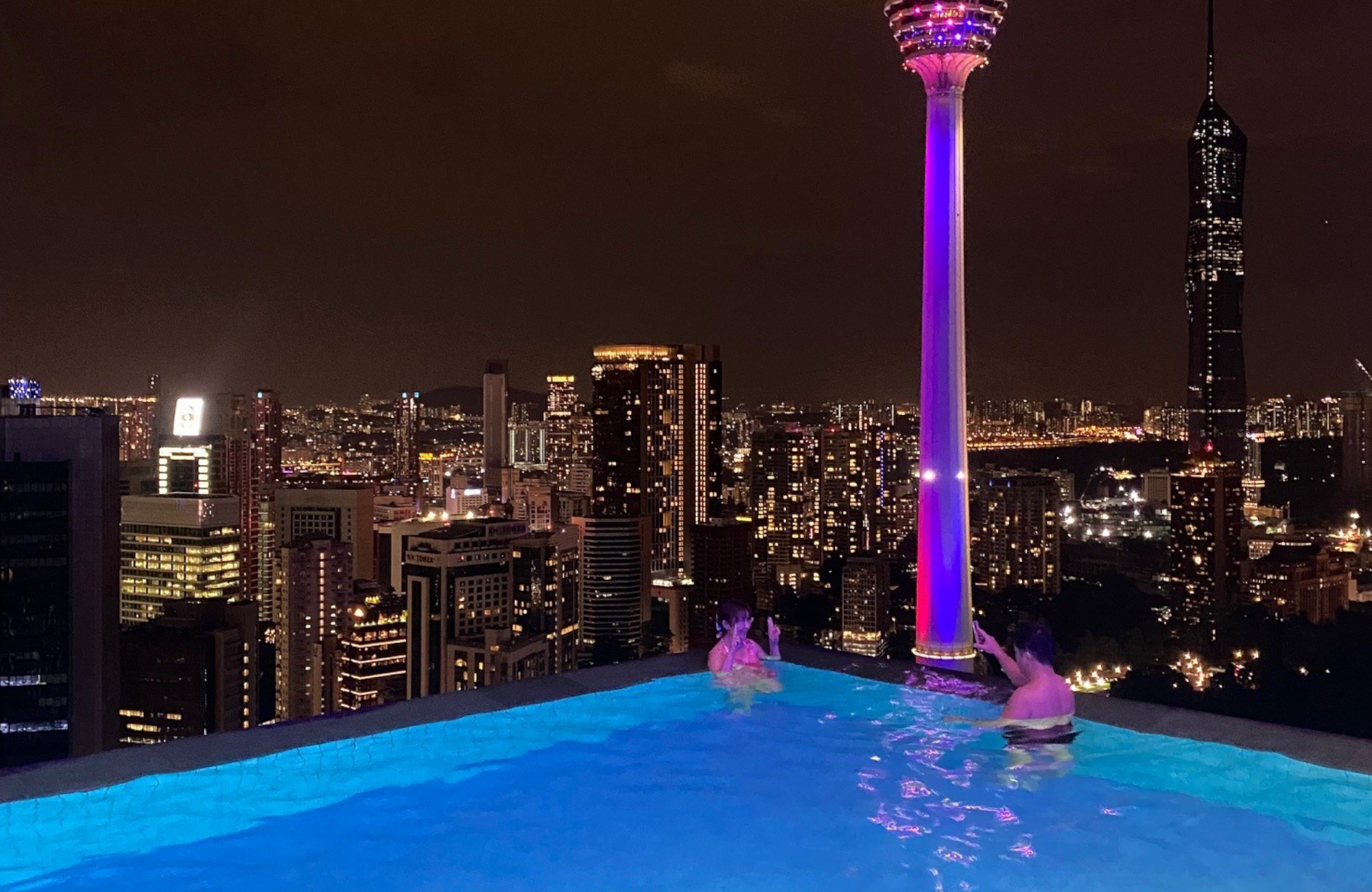 I Kuala Lumpur var vi ude og gå oppe i træerne på sådan nogle broer i en park midt i byen. Vi boede på et hotel hvor der lå en svimmingpool på 52. sal hvilket var meget højt oppe, så når det blev mørkt kunne man kigge ud over byen som var lyst op af lamper i huse og på gaden, det er nok noget af det smukkeste jeg nogensinde har set.